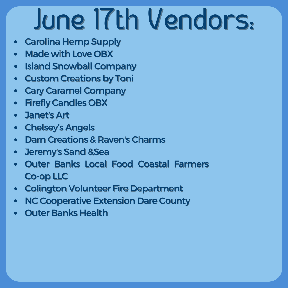 The Town of Kill Devil Hills is excited to invite you to shop local, support small businesses, and enjoy our vibrant community spirit at our market! With around 50 unique local vendors, there’s something for everyone!