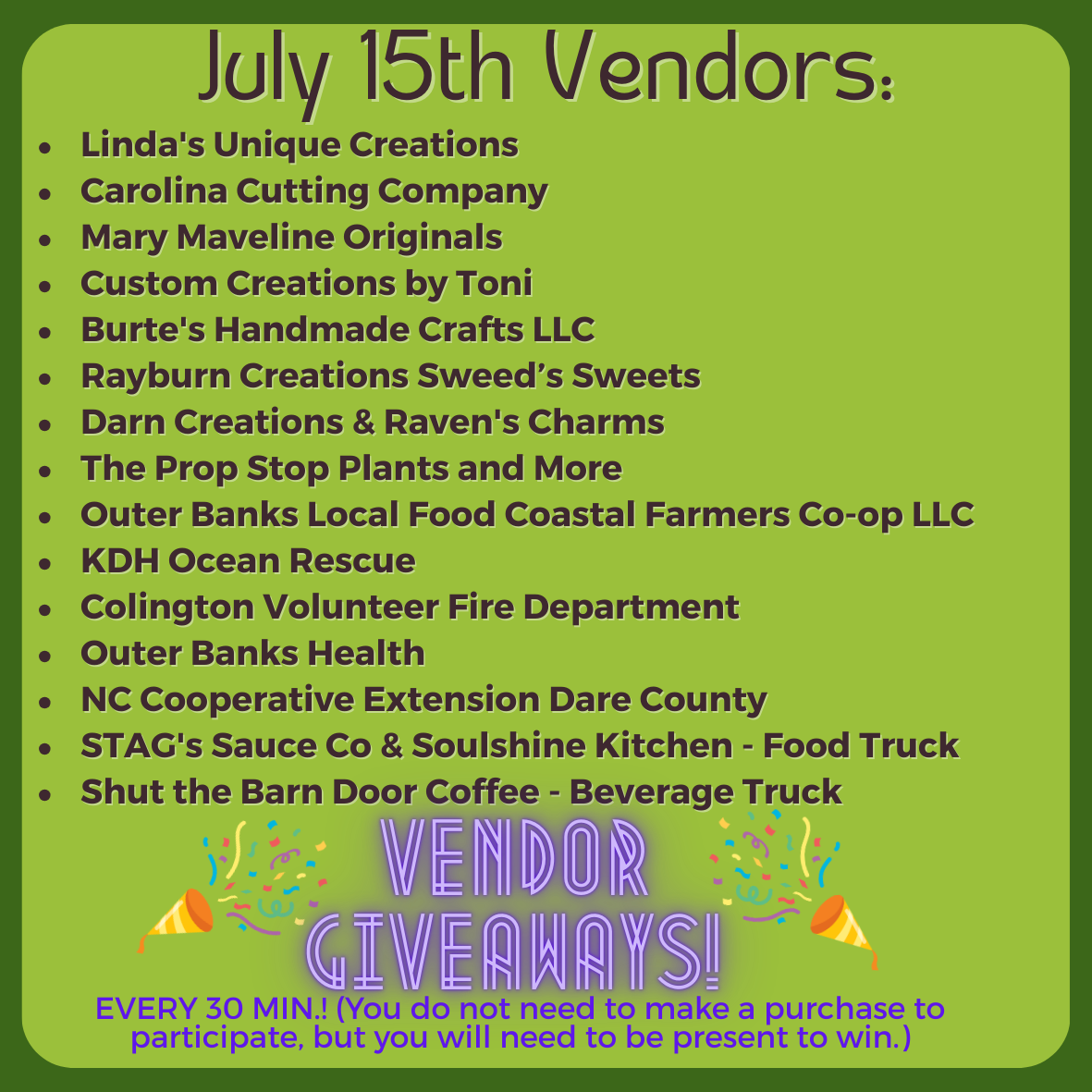 Make plans to attend the First Flight Farmers Market this Tuesday, July 15th! We’ve got something extra special planned!