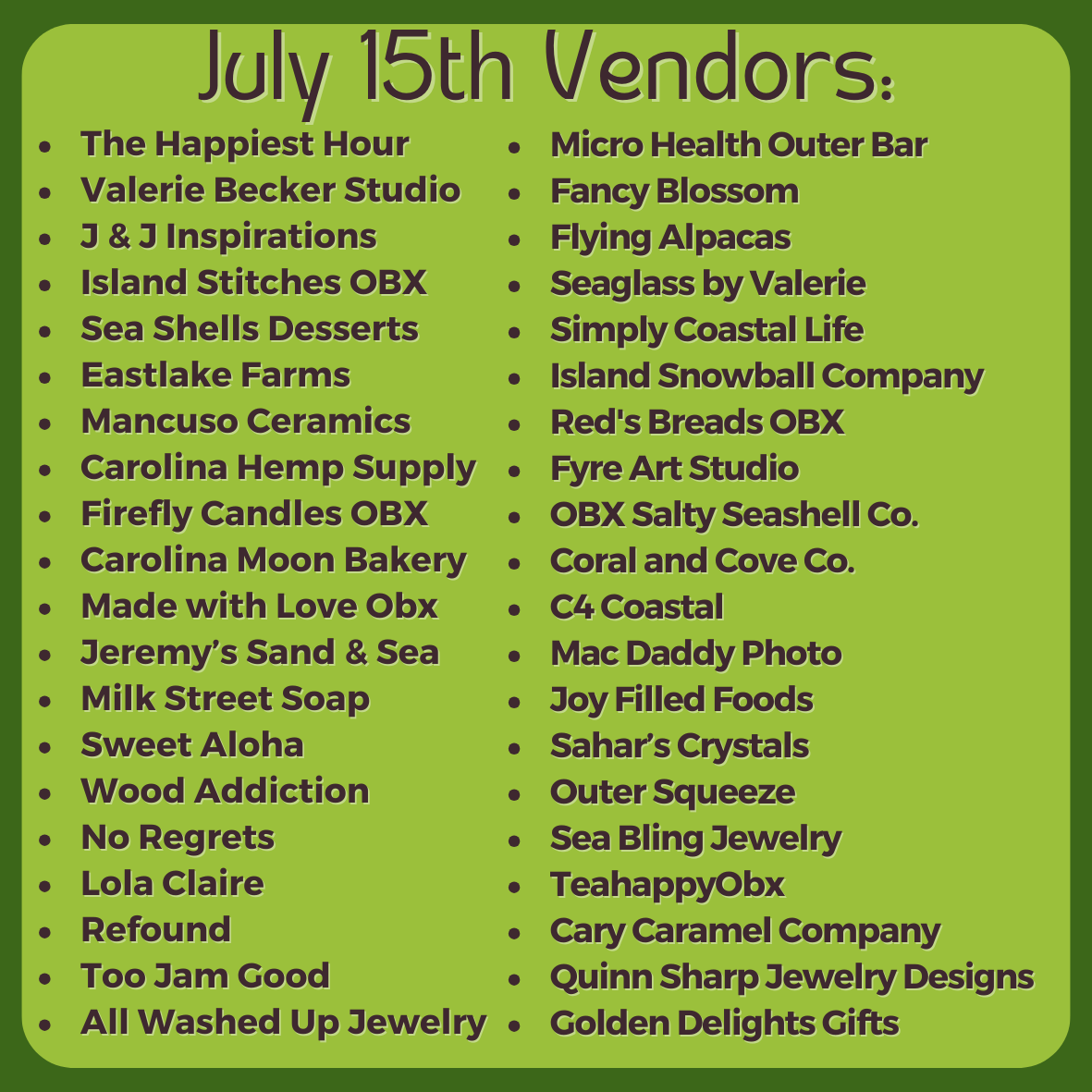 In addition to browsing goodies from 50+ amazing local vendors, we’re thrilled to announce vendor GIVEAWAYS every 30 minutes during the market! Many of our talented vendors have generously donated prizes from their booths — and you could be a winner! (You do not need to make a purchase to participate, but you will need to be present to win.)